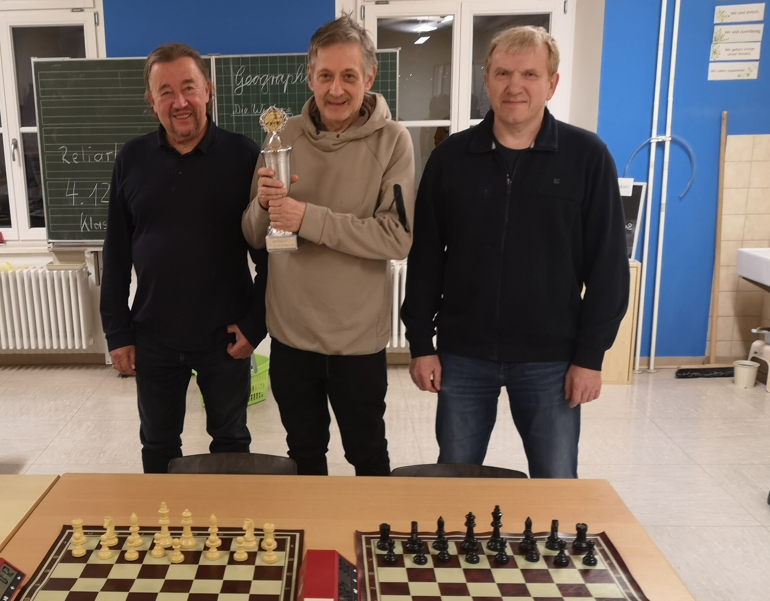 Elf Teilnehmer bei der diesjährigen Blitzmeisterschaft lieferten sich einen spannenden Kampf. Titelverteidiger Edwin verlor gleich in der ersten Runde gegen Birgit und schien so früh aus dem Rennen. Durch einen Sieg gegen Christian war es dann wieder ausgeglichen. Edwin musste im weiteren Turnierverlauf aber gegen Jürgen ein Remis abgeben und so lag bis am Ende Christian vorne und ist damit neuer Blitzmeister, herzlichen Glückwunsch! Nur eine Niederlage und zwei Remis bedeuteten am Ende Platz zwei für Jürgen, Edwin fiel durch eine Niederlage gegen Michael auf den dritten Platz zurück.